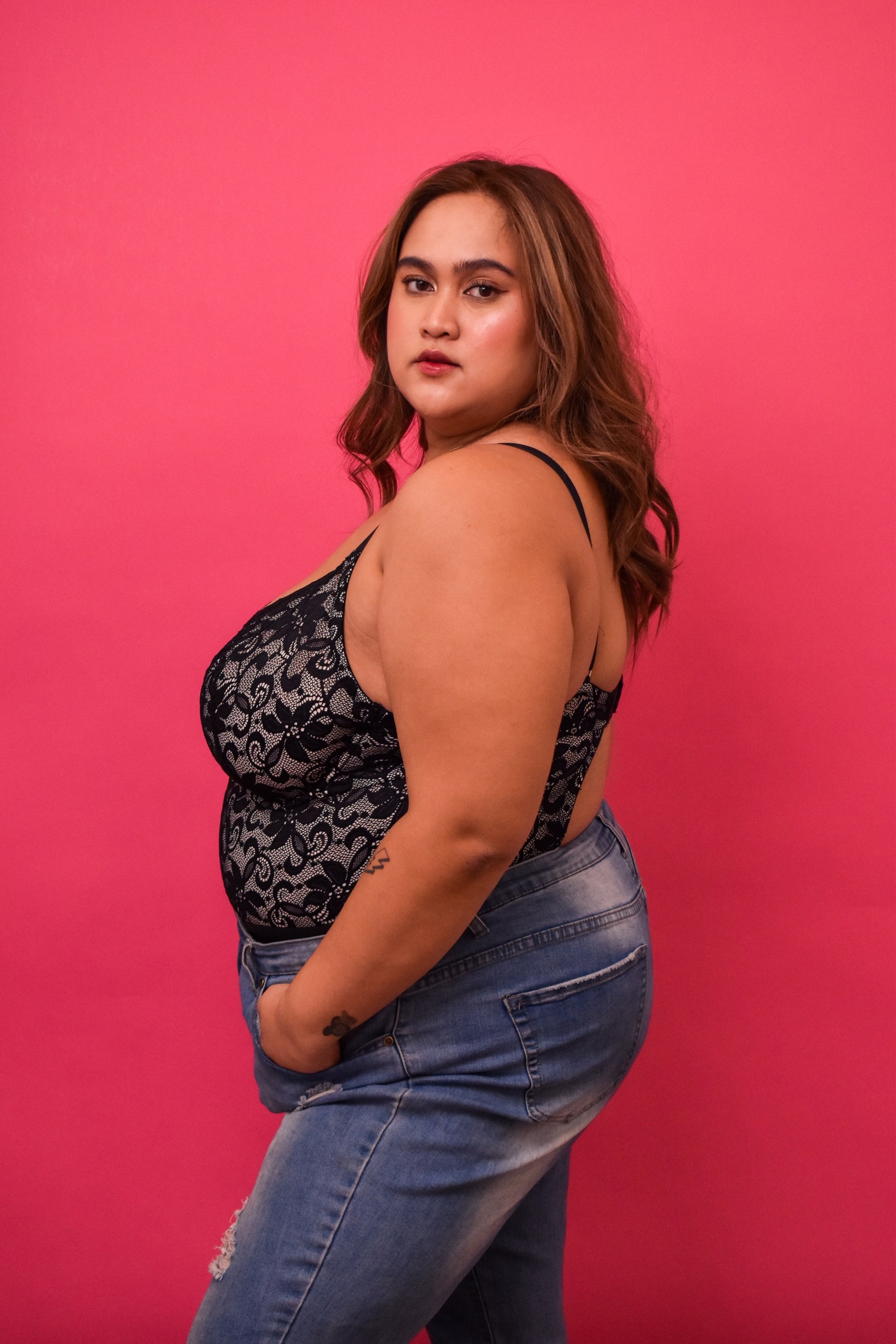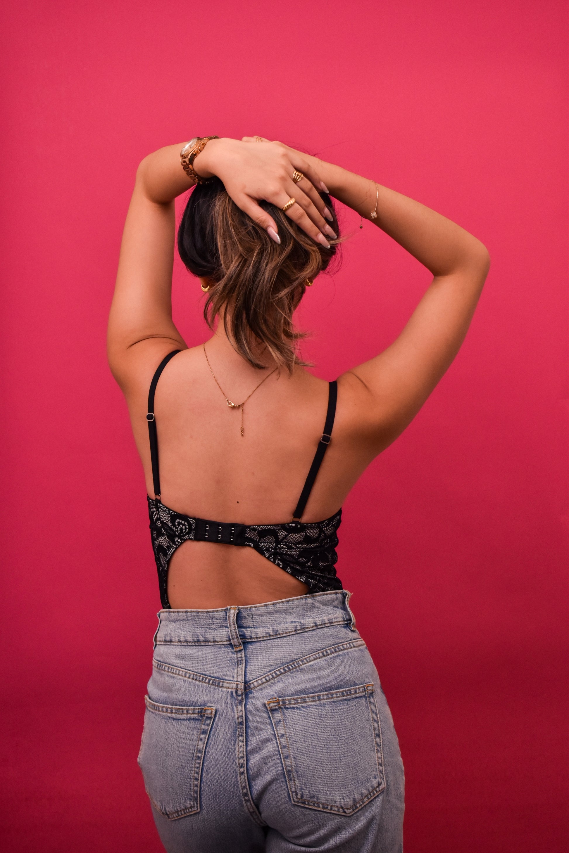 This lace bodysuit is exclusively available in our Love, Maddie Collection.