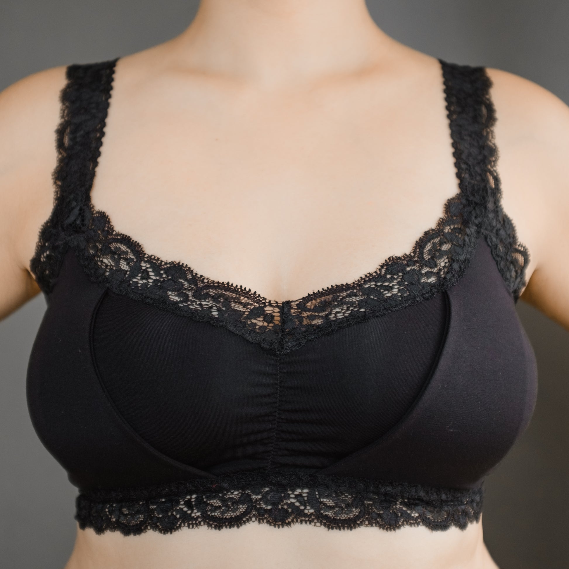 The main fabric we use for our nursing bralette is micro modal. It's a cellulose-based material that is processed using sustainable methods. It feels much softer than cotton, it is breathable, and, it has cooling properties, making it ideal for our tropical heat.