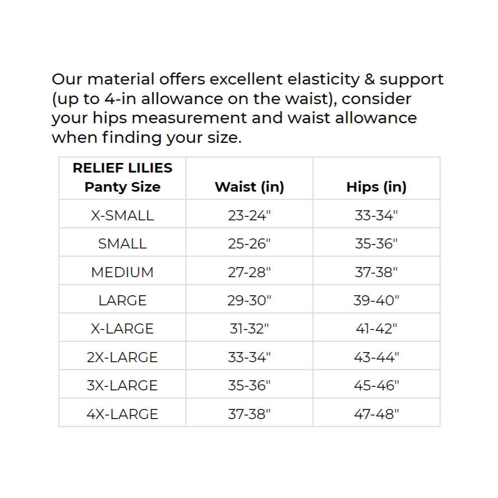 Your monthly necessities in our iconic Relief Lilies. Choose from our washable or biodegradable pads, as well as our panties with mild or moderate absorbency.