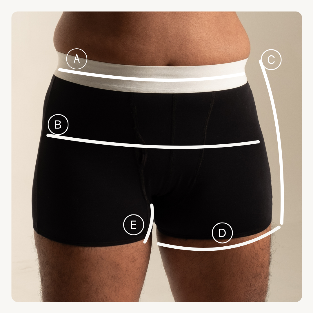 - Measure along the side of your leg. This will be the length of your boxers or shorts. (C)