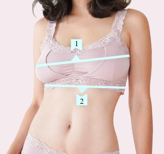 - Find your BUST measurement by measuring around the fullest part of your breasts (1)